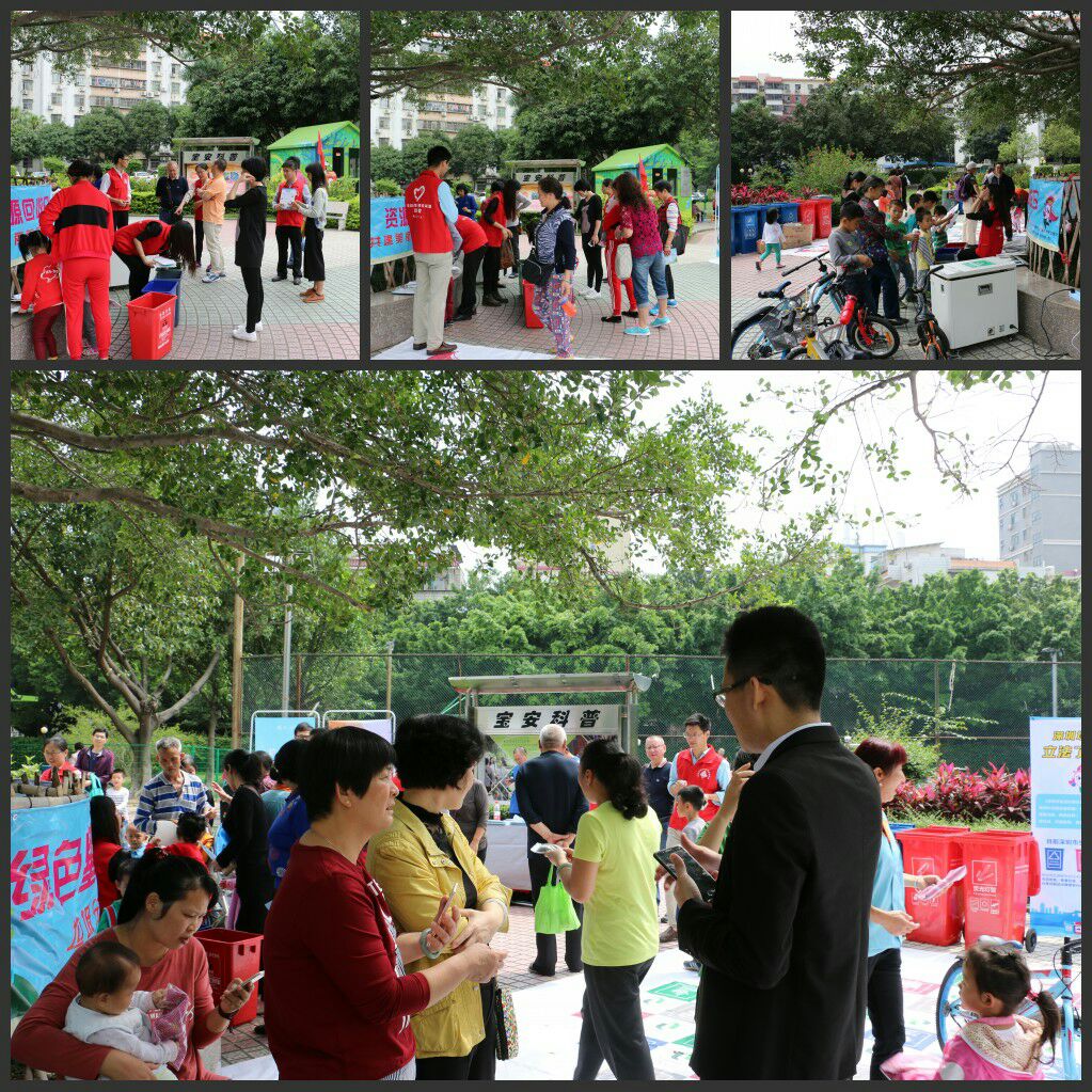 2017年4月15日上午9時(shí),“藍(lán)馬甲”市公務(wù)員志愿者、新安城管科、義工聯(lián)志愿者、源創(chuàng)環(huán)??萍加邢薰炯叭h(huán)保公司聯(lián)合在寶安新村開(kāi)展“綠色星期六,資源回收日”活動(dòng)。現(xiàn)場(chǎng)參加活動(dòng)居民人數(shù)大約300人。向居民宣傳垃圾減量分類的意義,引導(dǎo)居民學(xué)會(huì)物盡其用、垃圾分類投放,并且在現(xiàn)場(chǎng)派發(fā)300多份宣傳指導(dǎo)手冊(cè)及200多份禮品,組織開(kāi)展親子活動(dòng)進(jìn)行垃圾分類小游戲。此次活動(dòng)回收了廢紙皮50約多斤、廢塑料約20多斤、廢金屬約2斤、廢光管20條、廢電池約0.5公斤。垃圾分類,共建美麗新安。