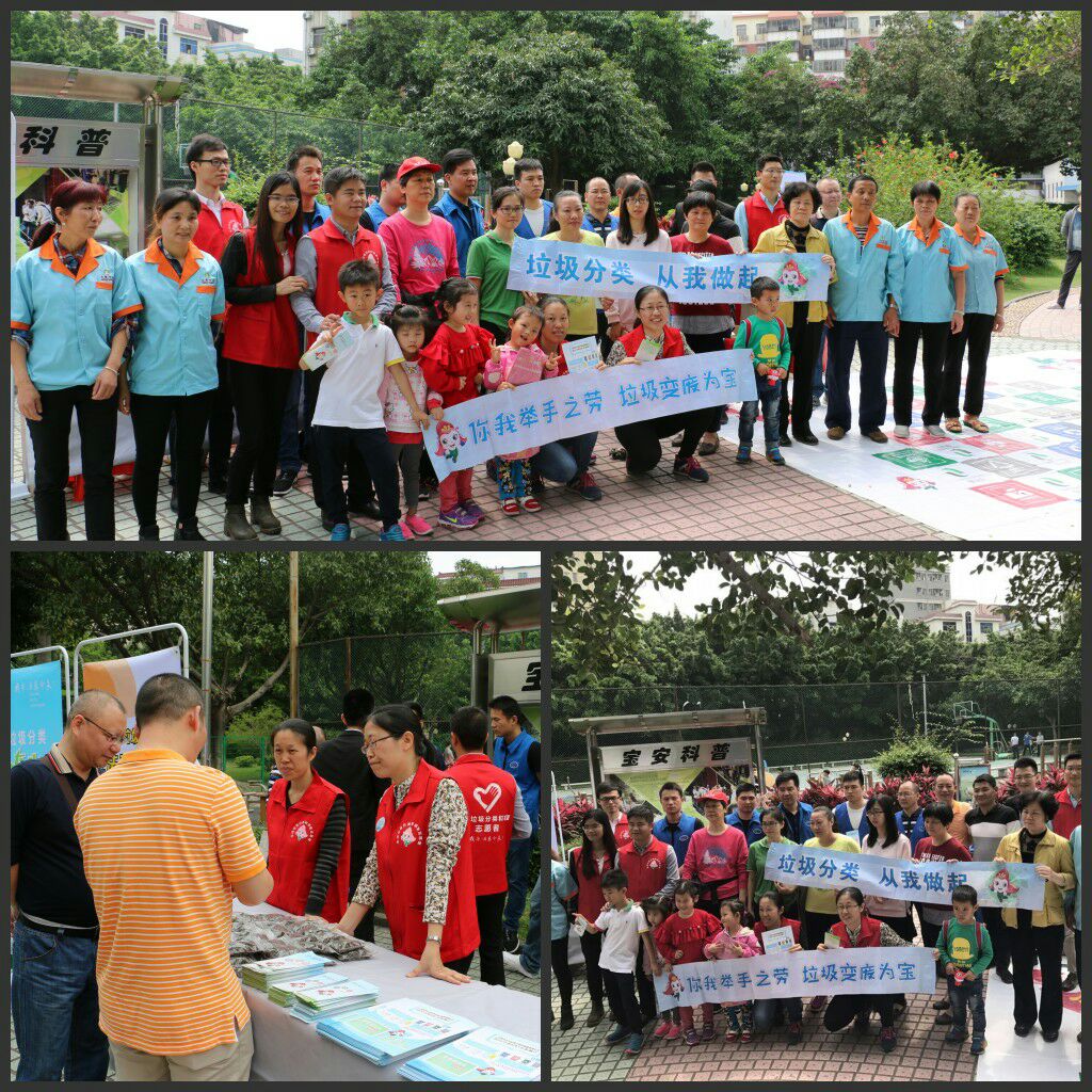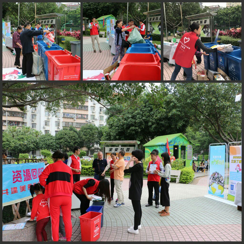2017年4月15日上午9時(shí),“藍(lán)馬甲”市公務(wù)員志愿者、新安城管科、義工聯(lián)志愿者、源創(chuàng)環(huán)??萍加邢薰炯叭h(huán)保公司聯(lián)合在寶安新村開(kāi)展“綠色星期六,資源回收日”活動(dòng)。現(xiàn)場(chǎng)參加活動(dòng)居民人數(shù)大約300人。向居民宣傳垃圾減量分類的意義,引導(dǎo)居民學(xué)會(huì)物盡其用、垃圾分類投放,并且在現(xiàn)場(chǎng)派發(fā)300多份宣傳指導(dǎo)手冊(cè)及200多份禮品,組織開(kāi)展親子活動(dòng)進(jìn)行垃圾分類小游戲。此次活動(dòng)回收了廢紙皮50約多斤、廢塑料約20多斤、廢金屬約2斤、廢光管20條、廢電池約0.5公斤。垃圾分類,共建美麗新安。